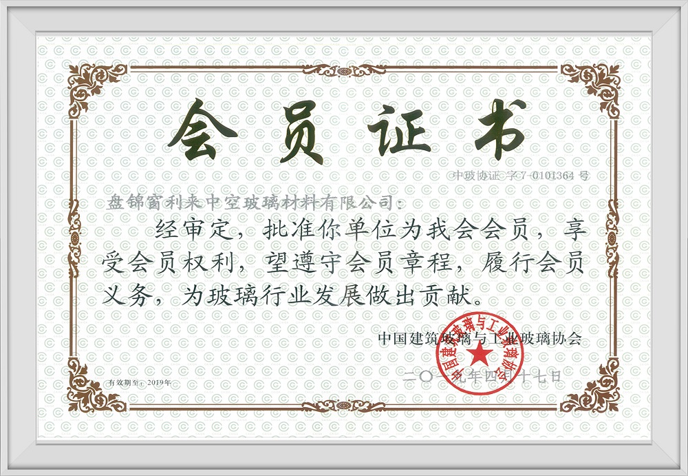 中國(guó)建筑玻璃與工業(yè)玻璃協(xié)會(huì)會(huì)員證書(shū)