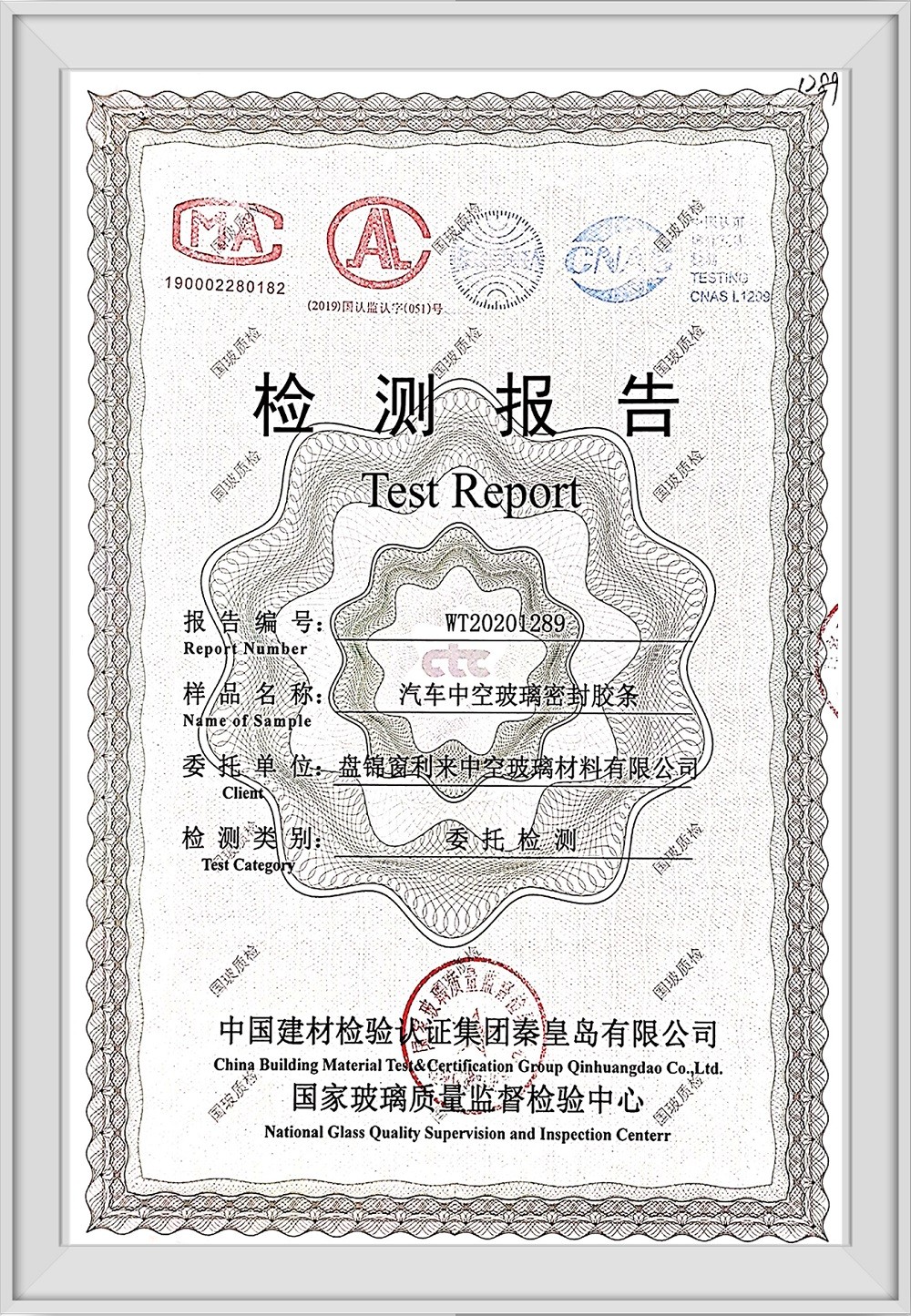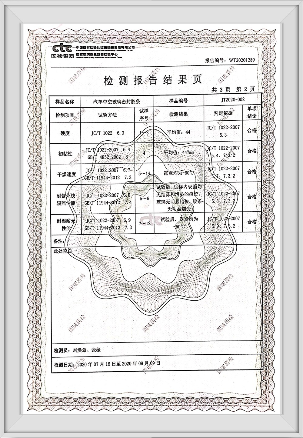 汽車中空玻璃密封膠條檢測報(bào)告