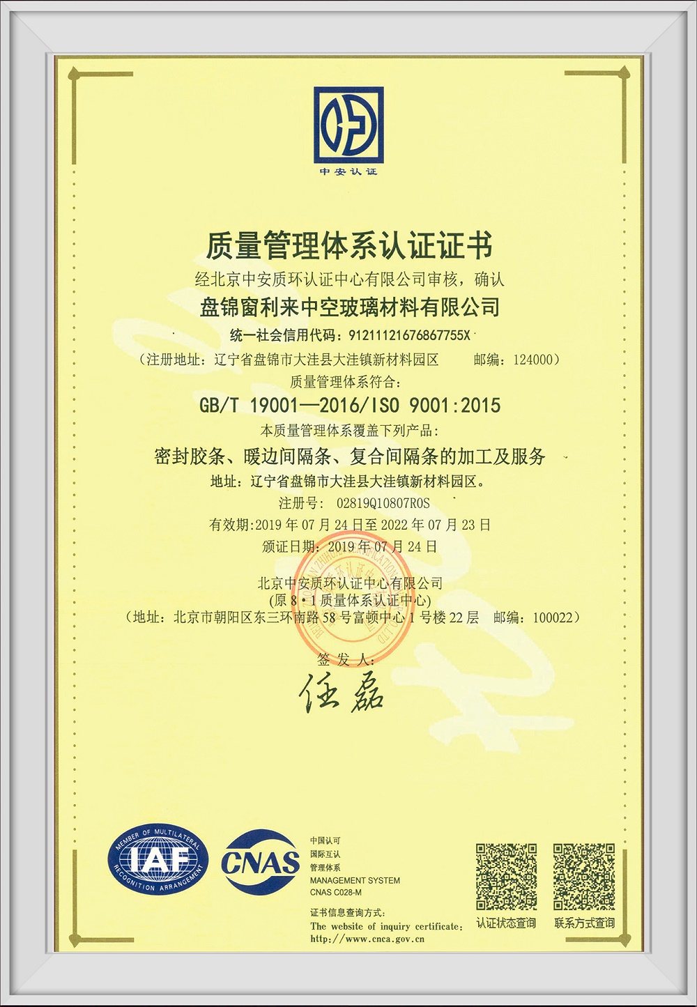 質(zhì)量管理體系認(rèn)證證書(shū)
