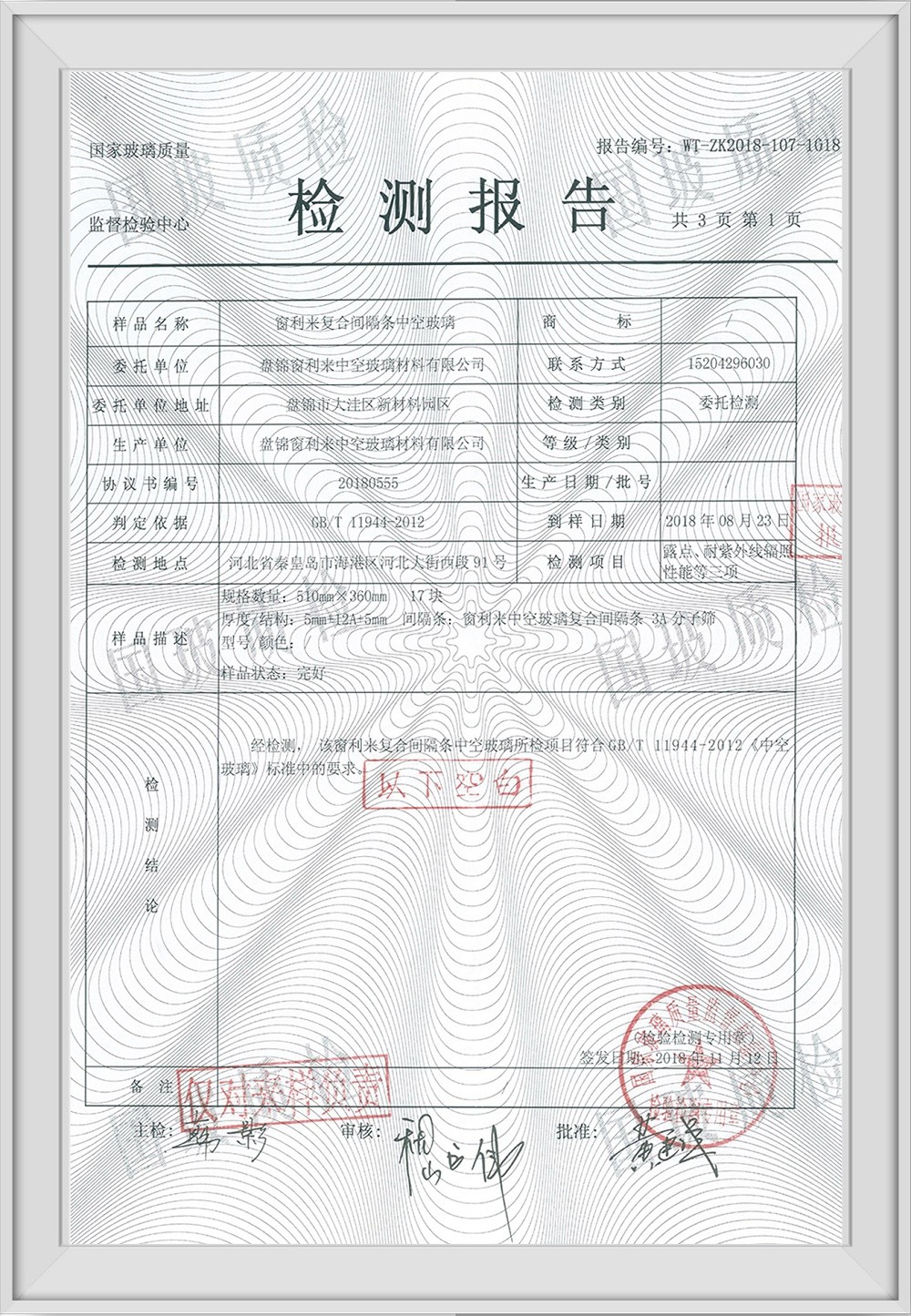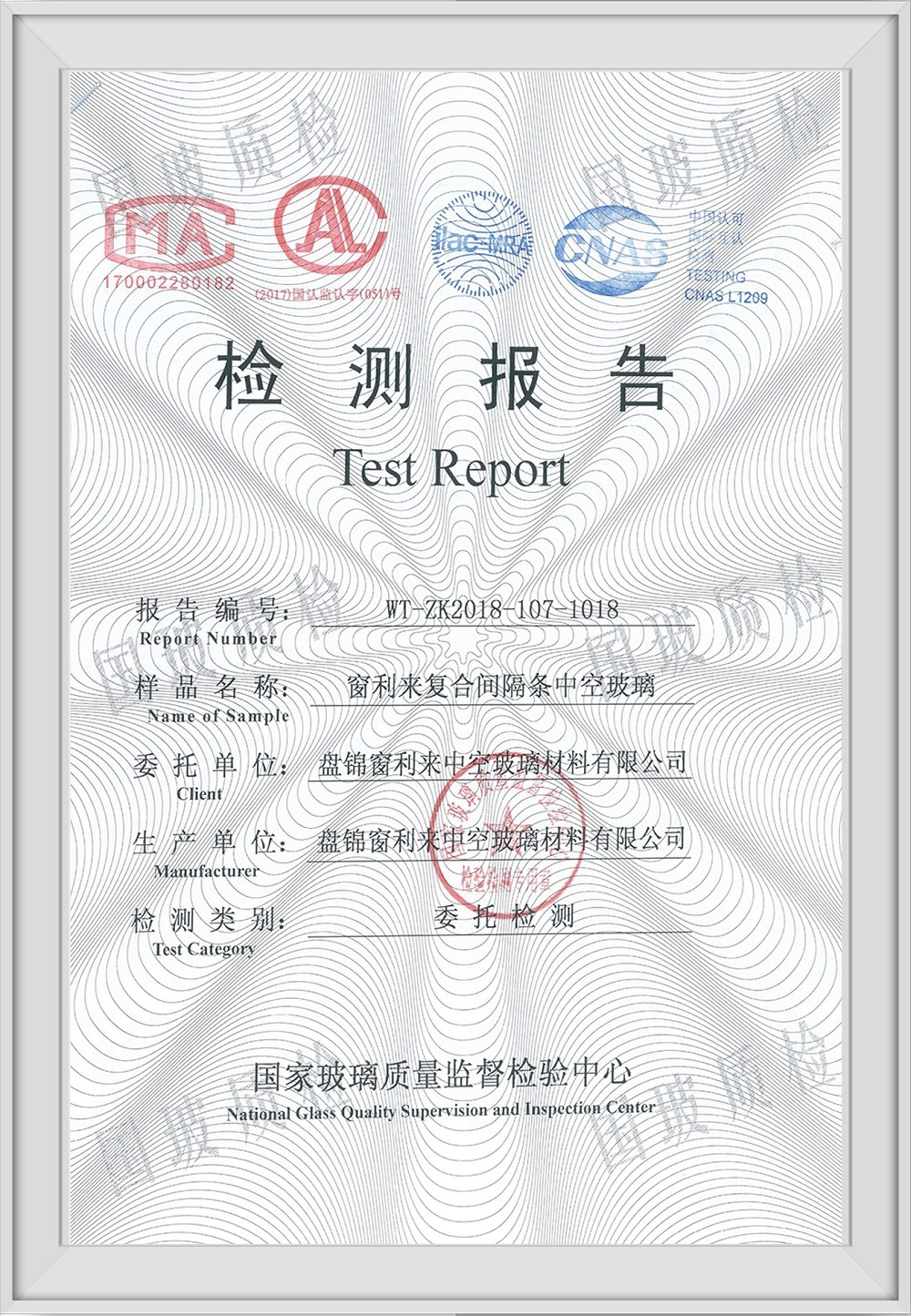窗利來復(fù)合間隔條檢測報告
