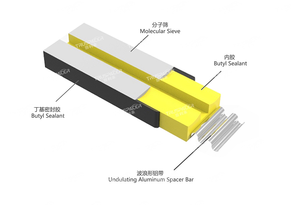 該產(chǎn)品由丁基密封膠、分子篩、內(nèi)膠(骨架膠)三大功能區(qū)構(gòu)成,并有波浪形鋁帶作支撐,產(chǎn)品結(jié)構(gòu)設(shè)計(jì)獨(dú)特而實(shí)用,生產(chǎn)操作簡(jiǎn)單,質(zhì)量易于控制。